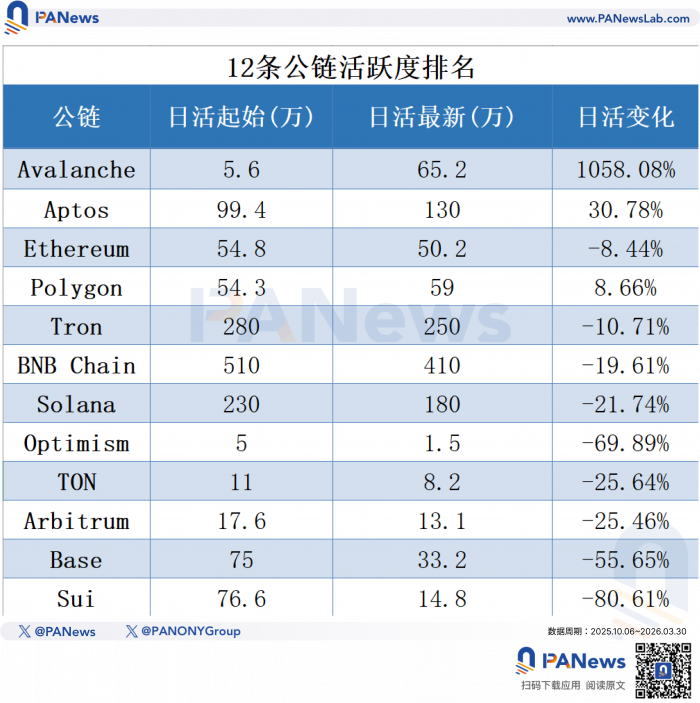通过growthepie(以太坊及L2)和Token Terminal(L1公链)的数据,PANews对全部12条公链在研究区间内的日活指标也进行了分析。