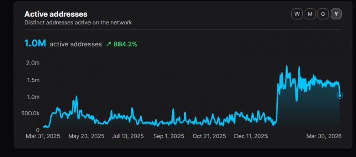 反面案例则是Sui,日活从76.6万骤降至14.85万,跌幅80.61%,与TVL、稳定币形成三维共振下跌。上一轮Sui生态的热潮已彻底退散,资金、用户、交易量全面撤离。
