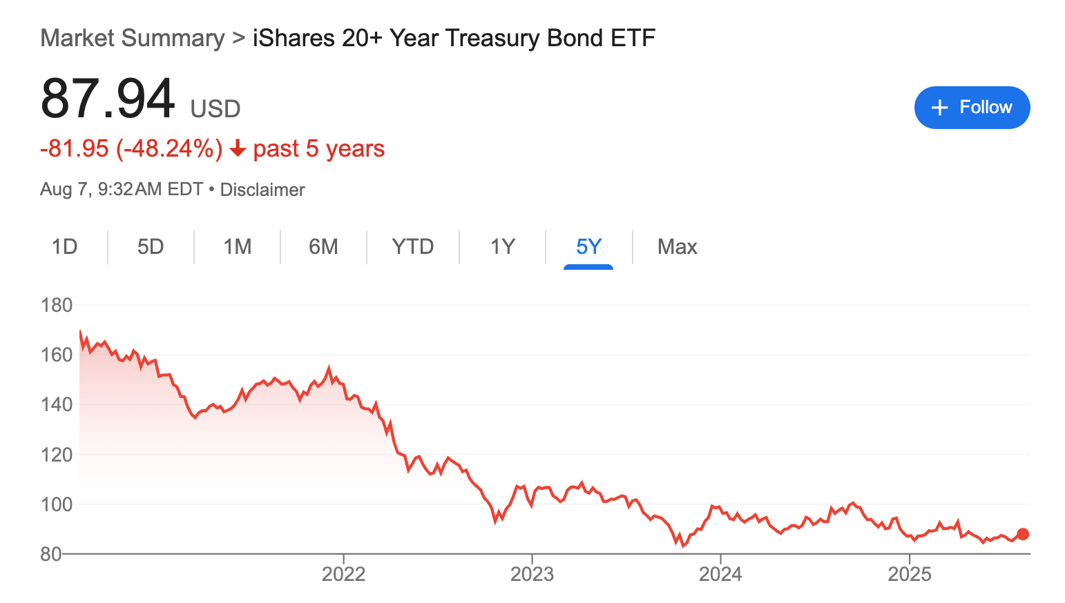 例如,iShares 20+ 年期国债 ETF 在过去 5 年内缩水近 50%。过时的理财顾问们正用过时的 60/40 投资组合配置,摧毁婴儿潮一代的投资组合。
