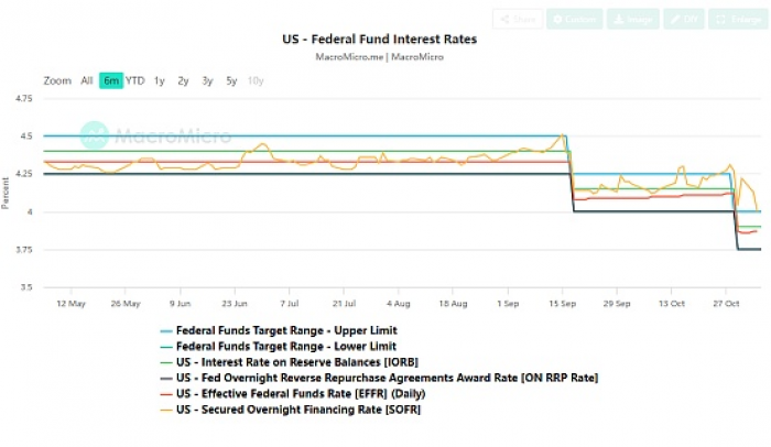 在此种背景下,全球金融市场风声鹤唳,稍有信息面的变动便波动剧烈。而就在7日前,鲍威尔还显露出鹰派姿态,表示““12月会议上进一步下调政策利率并非定局,远非如此”,也让市场更为警惕。在11月5日参议院第14次否决共和党主导的临时拨款案后,全球市场迎来血洗。