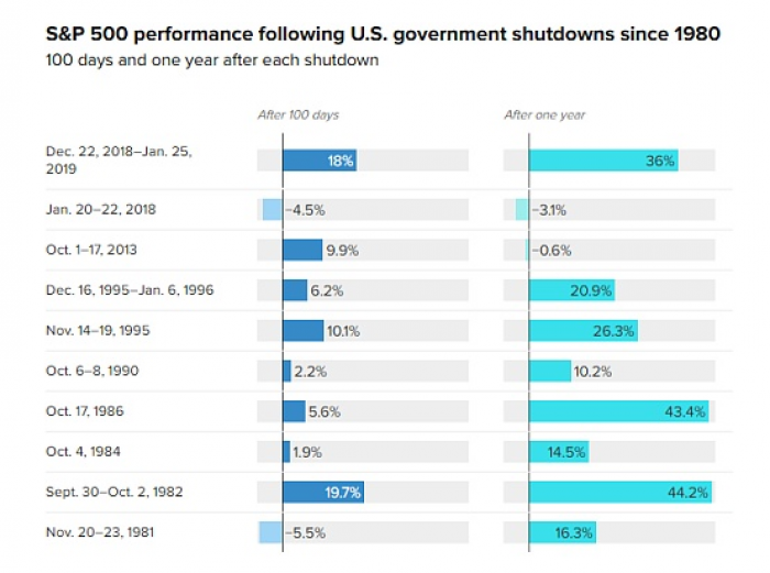 在上述一系列原因中,最核心的导火索还是美国政府的关门,既如此,美国政府何时恢复运转,恢复后的市场表现就成为了分析的重点。美国两党目前的争议焦点在于《平价医疗法案》,这一法案于2010年被奥巴马通过,近年来共和党多次尝试废除或修改法案。而在今年年底,《平价医疗法案》加强型补贴将到期,意味着部分美国民众的保费将大幅上涨,民主党人坚持需在临时预算案中加入关于医保方面预算的附加条款,共和党人则坚持要先结束政府“停摆”再就医保预算进行谈判。尽管两者对外态度坚决,但面对如此长期的停摆,据华盛顿邮报援引知情人士爆料,约有十几名参议院民主党人正在考虑投票结束这场争议。