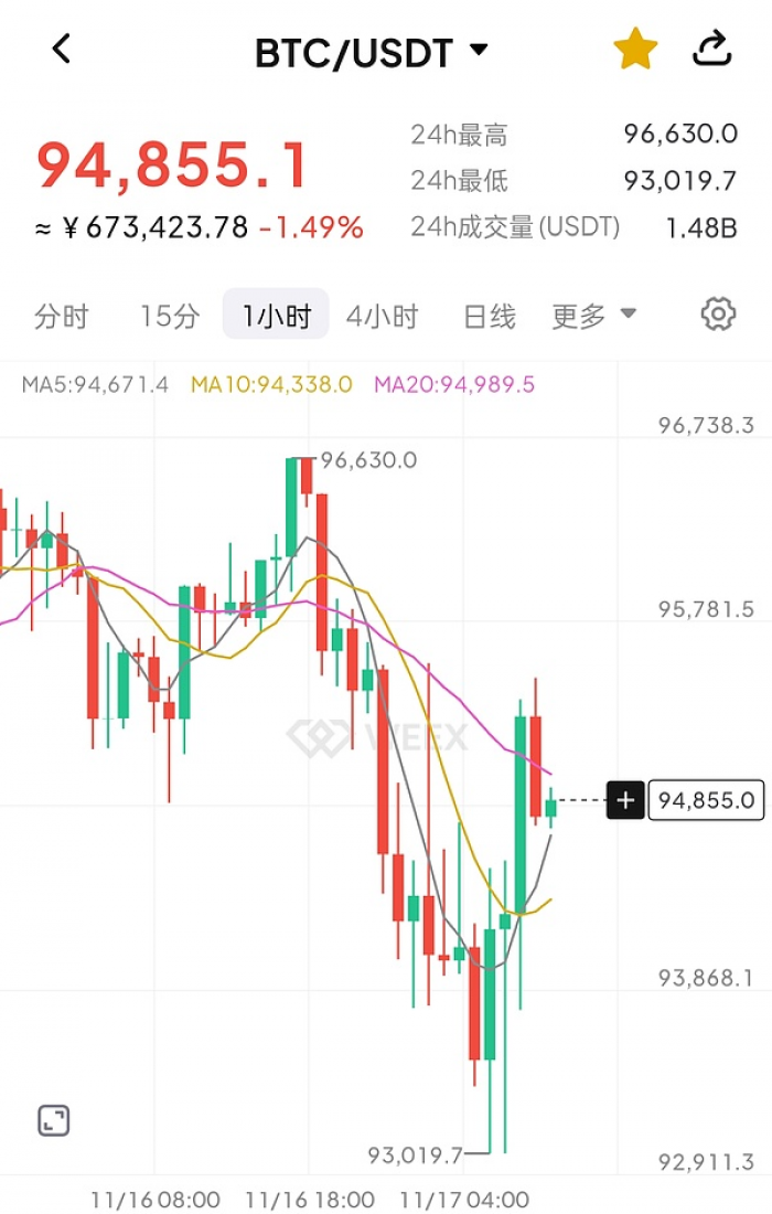 11月17日,加密货币市场再度遭遇猛烈抛售。比特币凌晨短线暴跌近1000美元,一度跌至93000美元左右,创下自5月8日以来的新低。
