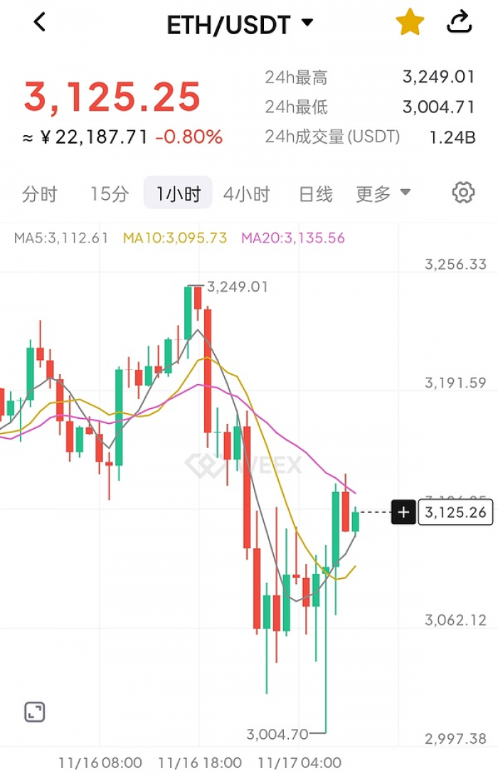 第二大加密货币以太坊同样未能幸免,一度逼近3000美元关键心理关口。