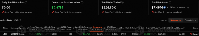 LTC ETF则成为一个经典案例,缺乏新叙述的传统资产即使获得ETF通道暂时也难以焕发新生。于10月29日上市后,价格表现疲弱软跌约7.4%,资金幅度达到近乎,总计净流入仅747万美元,且多次出现单日零流入的尴尬局面。每日仅约53万美元的成交额凸显其流动性不足。这表明LTC目前所依赖的数字白银等陈旧报道在市场上已缺乏吸引力。