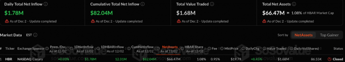 HBAR ETF作为中小市值项目的代表,却取得了相对其自身规模而言较大成功的渗透效果。该ETF于10月29日上线,尽管近两个月HBAR价格下跌约28%,但ETF累计却获得了8204万美元的净收入。并使得HBAR ETF的资产管理规模占HBAR总市值达到1.08%。这种渗透效果要远超Doge、LTC等山寨币,这也可能意味着市场对于HBAR这类具备明确企业级应用的中等市值资产拥有一定的信心。