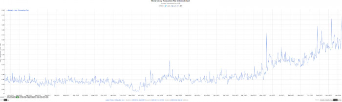 从图表来看,Monero的平均交易费用在2025年上半年之前相对平稳,基本维持在0.1美元以下。但进入6月,增长趋势开始显现;到12月11日,最高的平均费用一度达到0.3美元以上,较半年前增长3倍以上。