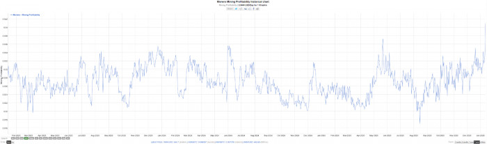 既然“明面”上的资金平淡无奇,我们需要转向“暗面”的链上世界。XMR作为隐私性最强的网络,可挖掘信息极少,但挖矿难度和挖矿收益的变化,能够让我们窥探到资本在供给端的布局。