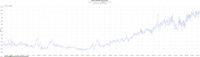 挖矿历史难度通常代表资本参与网络生态的热情。数据显示,XMR的挖矿难度在2024年底开始迅速攀升,整个2025年上半年都处于快速增长状态。虽然在9月到11月期间有所波动,但近期又开始了新的一轮难度爬升。