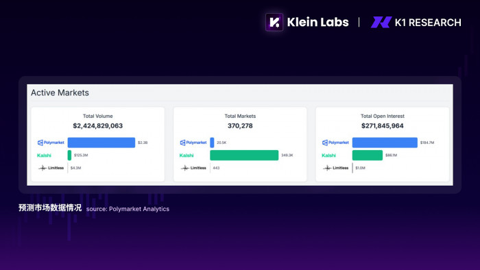 预测市场的本质是信息聚合,资金通过下注行为对未来事件进行“投票”,价格则在不断修正中逼近集体共识。从结构上看,这是一种天然存在、且相对更合规的“赌场形态”:没有庄家操控赔率,结果由现实世界事件决定,平台仅通过抽取手续费获利。这一赛道的第一次高调亮相,出现在美国总统大选期间。围绕选举结果的预测市场在链上迅速聚集流动性与公众注意力,使其从边缘 DeFi 产品跃升为具备现实影响力的叙事方向。2025 年,该叙事并未退潮,而是随着基础设施成熟度提升、多个协议发币预期下而持续发酵。从数据层面看,2025 年预测市场已不再是小众实验。预测市场累计成交额已超过 24 亿美元,与此同时,全市场未平仓合约(Open Interest)维持在约 2.7 亿美元水平,显示这并非短期博弈流量,而是真正有资金在持续承担事件结果风险。