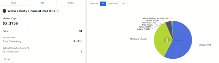 其中最关键的助推因素是币安的深度整合与流量支持。在 BSC 链上,USD1 的供应量约 18.3 亿美元,占其整体发行规模的 57.8%。