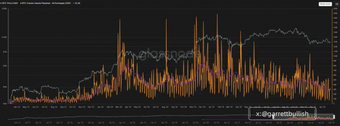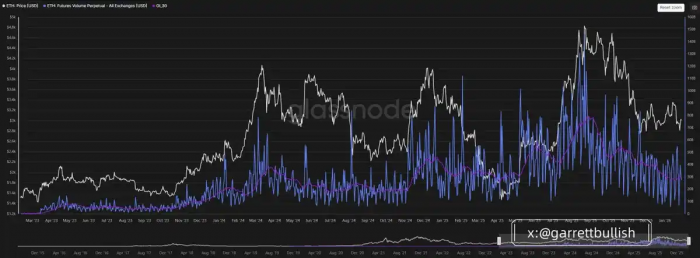 从期货交易量来看,BTC 和 ETH 的市场活跃度已经接近历史低位,这表明去杠杆过程正在接近尾声。