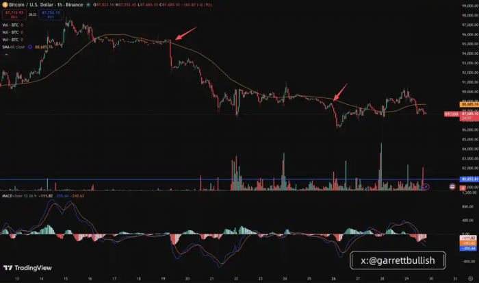 我们经常观察到,在流动性稀薄的时段出现集中性抛售,尤其是在亚洲或美国投资者处于睡眠状态时,例如亚洲时间凌晨 00:00–08:00。这类波动往往触发连锁反应,包括强平、追加保证金通知以及被动卖出,进一步放大下跌幅度。
