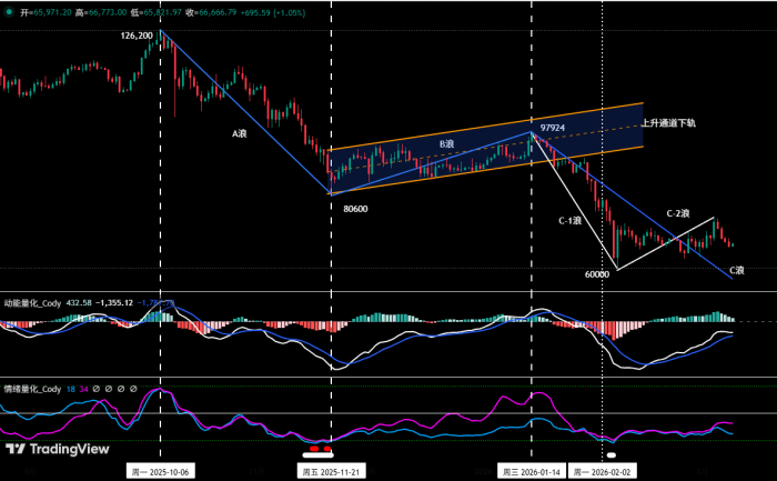 • 我们维持此前的核心研判框架:比特币自 2 月 6 日低点(约 60,000 美元)启动的上涨行情,在性质上属于大级别 C 浪调整内部的C-2 浪超跌反弹,随后将有C-3 浪调整行情。