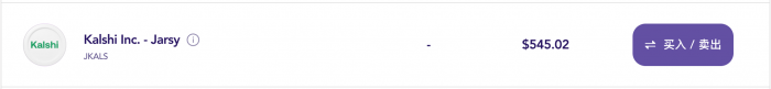 Jarsy 平台,股票盘前标价为 545 美元左右。(相较于我们 1 个月前在《Kalshi 交易量续破新高,盘前股价多少合理?》一文中的 504 美元已增长超 40 美元,涨幅达 8.1%)
