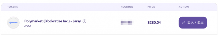 Jarsy 平台,股票盘前标价为 280 美元左右。