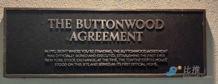 1792 年 5 月 17 日,24 个经纪人在华尔街一棵梧桐树下签署了《梧桐树协议》(Buttonwood Agreement),约定互相交易股票。这是纽约证券交易所(NYSE)的前身。